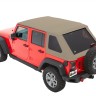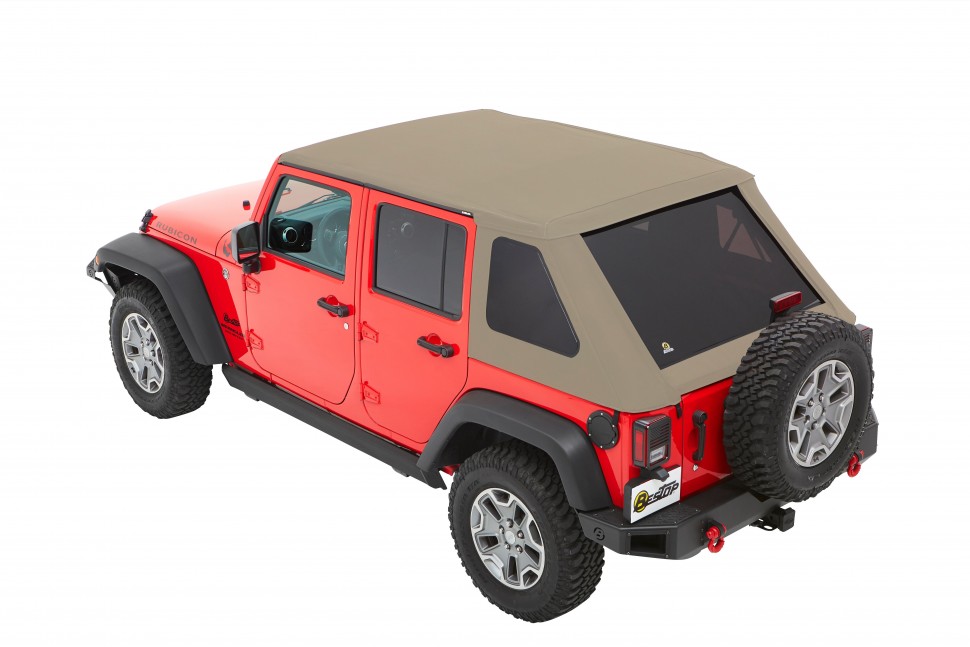 The Trektop™ brings a tight, clean fabric soft top look to your 4-door Jeep. Run it as a fully-enclosed, all-season soft top for protection from the elements or remove the sides and rear window and enjoy it as a bikini allowing you to feel the breeze as you experience your outdoor adventure. Zippered pockets above the driver and passenger provide for organization of small gear items. Zipperless technology allows for an improved fit and easier installation. Use of the tailgate bar and clips allows for hassle-free opening of the tailgate.