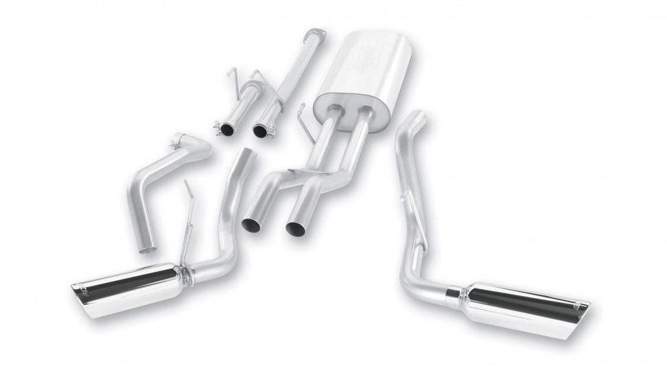 Features bright chrome on T-304 stainless steel tips. Muffler contains an internal H-Pipe for increased performance and improved sound. BORLA® Cat-Back™ & Axle-Back exhaust systems feature patented straight-through and multi-core technology to unleash hidden horsepower. Increased exhaust velocity adds power, driving excitement, fuel economy, and the distinctive BORLA® Sound of Power respected by motoring enthusiasts everywhere.