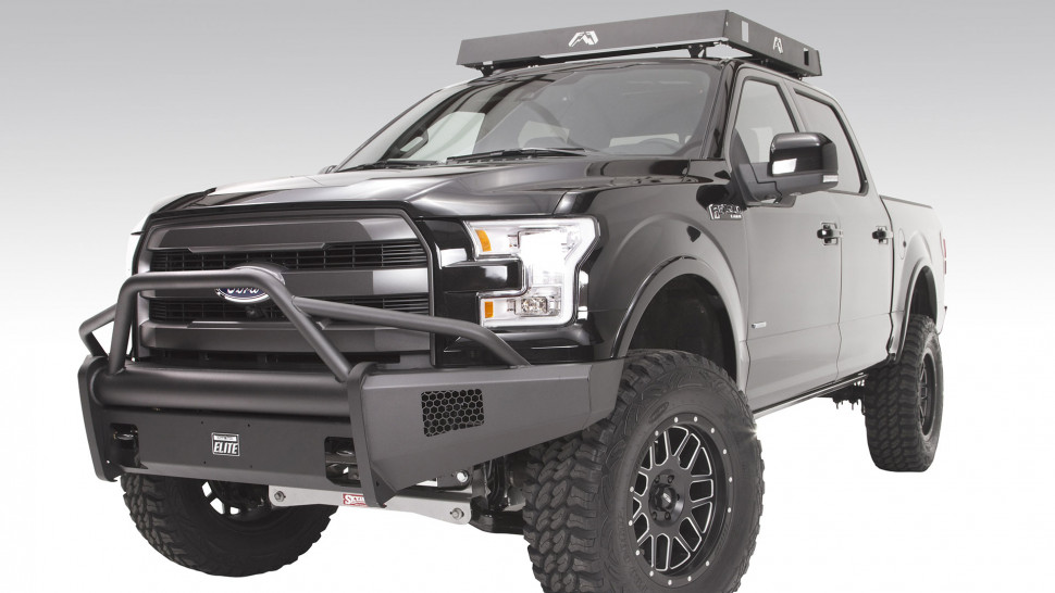 For the Ford 150 we took the ranch bumper design and combined it with the smooth plate look from our premium line to create BLACK STEEL ELITE. No grill mesh and premium powder coat give the ELITE bumpers a unique look. Like all Fab Fours’ products we matched every bumper to the body lines of each model truck. The ELITE series is a whole new look with the same Fab Fours quality, manufactured in South Carolina, USA. Available in either a Full Guard, Pre-Runner Guard or No Guard Bumper.