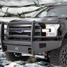 For the Ford 150 we took the ranch bumper design and combined it with the smooth plate look from our premium line to create BLACK STEEL ELITE. No grill mesh and premium powder coat give the ELITE bumpers a unique look. Like all Fab Fours’ products we matched every bumper to the body lines of each model truck. The ELITE series is a whole new look with the same Fab Fours quality, manufactured in South Carolina, USA. Available in either a Full Guard, Pre-Runner Guard or No Guard Bumper.