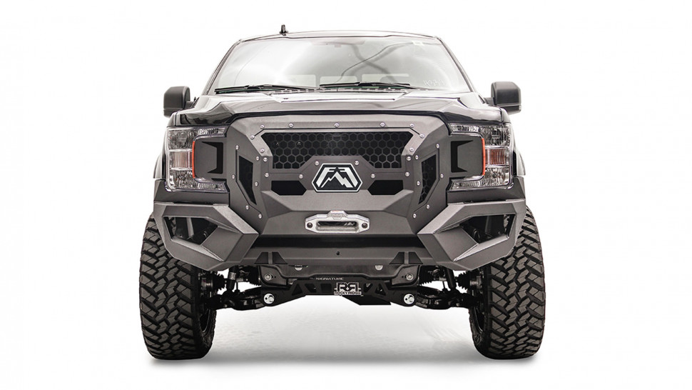 От концепции к реальности… GRUMPER Truck предлагает революционную комбинацию решетки радиатора и бампера лебедки. Эта агрессивная, но изысканная деталь, полностью настраиваемая со съемными вставками, обязательно изменит наш взгляд на бамперы Ford F150. ** ЗАПАТЕНТОВАН в США **