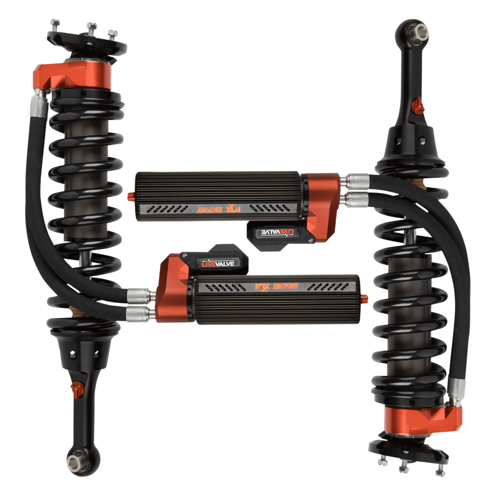 Advanced semi-active damping that uses vehicle sensors and accelerometers to instantly adapt to inertial, steering, braking, and acceleration inputs for improved handling, comfort, and bottom-out resistance. Three-way Quick Switch adjusters let you prioritize On-Road Performance, On-Road Comfort, or Off-Road Performance, while an external cooling system maintains consistent performance under heavy use.