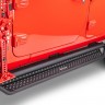 The Go Rhino Dominator D1 is a cab length slider with drop down step designed for both the daily driver and the recreational off-roader. The D1 is constructed of powder coated steel tubing that provides slider protection from trail obstacles and road debris along the rocker panel of vehicle. The wide step area and mesh stepping plate allows for easy access in and out of a lifted vehicle and the raised hex pattern offers a no-slip grip. Installation is easy and the utilization of the OEM step and rock rail mount locations means no drilling or cutting required. Hardware and brackets are included. The D1 Side Steps come with a Limited Lifetime warranty on materials and construction and a 5 year warranty on the Textured Black Finish.