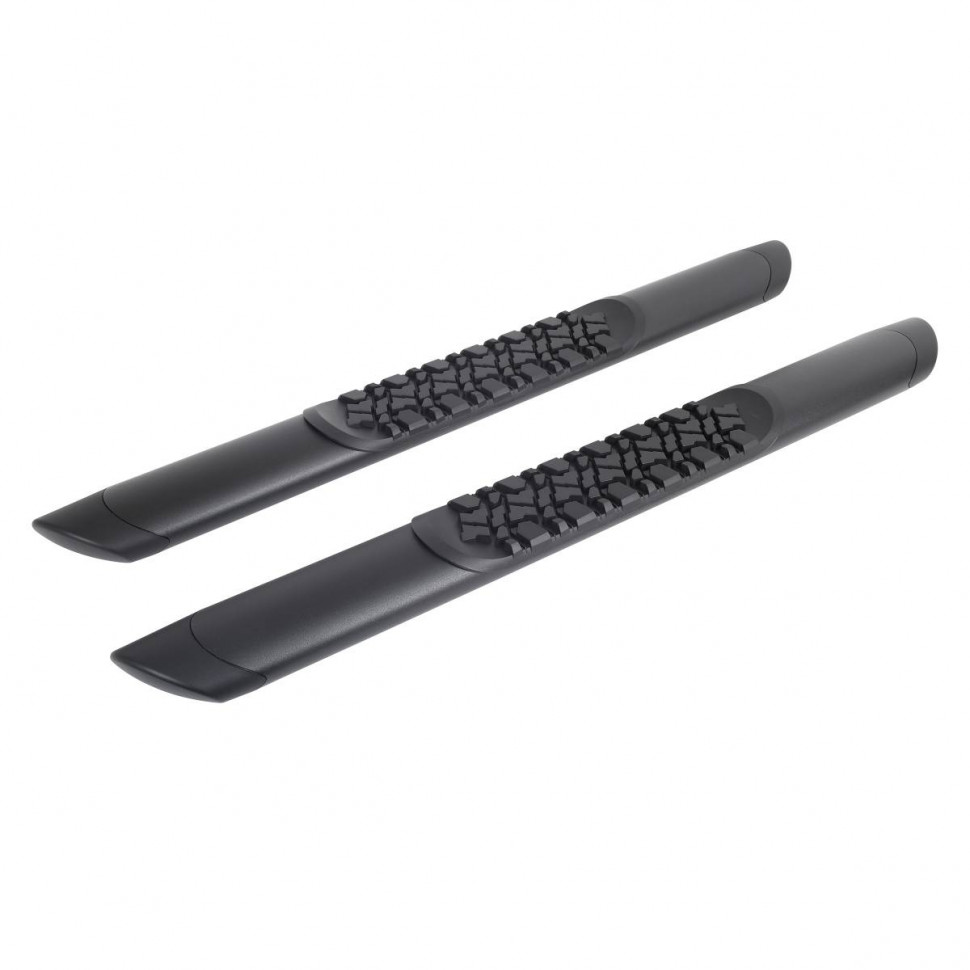 Go Rhino's V3 side steps bring on a sleek, aerodynamic look, the convenience of corrosion-resistant aluminum and strength based on quality engineering and design. Finished with a textured black powder coating, the 5” wide ellipse-shaped boards feature anti-slip polymer step pads with a multi-dimensional tire tread pattern so rain, snow and slush easily drain off and reduce the risk of slipping while stepping up into your vehicle. Each V3 board is fortified with a dual core full length extrusion allowing the board to support up to 300 lbs per step pad (600 lbs per side for 4-door vehicles). V3 Side Steps are backed by Go Rhino's industry-leading 5-year limited warranty. Hardware and brackets are included and installation on most vehicles will not require drilling.