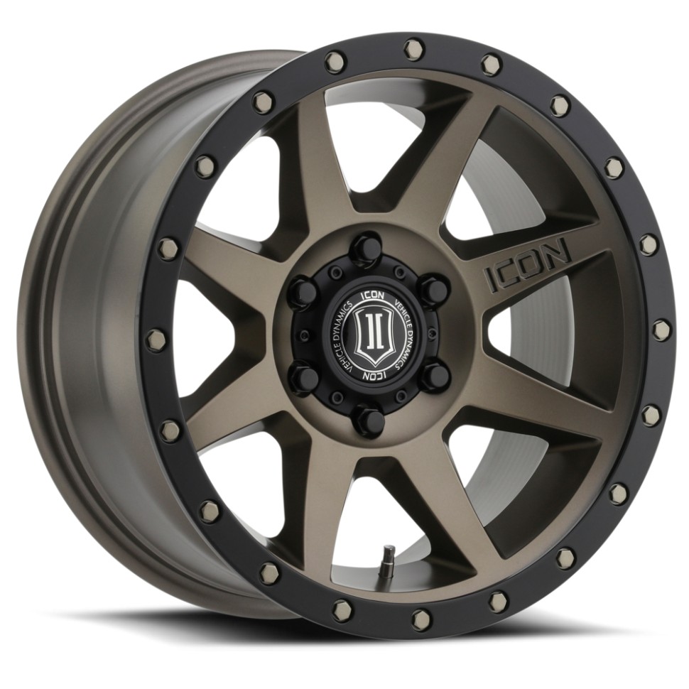 Bring a bold new look to your ride with the all-new ICON Alloys REBOUND! Combining sharp lines, a concave spoke design, and "ICON-optimized" dimensions, these wheels will increase both the form and function of your Jeep, truck, or SUV. Staying true to the ICON Alloys approach, the REBOUND has been engineered to maximize caliper clearance and optimize wheel position for un-hindered suspension travel and steering function. Backspace dimensions and wheel offset have been strategically developed to reduce scrub radius, improving all-around handling and ride quality and making a set of these wheels the perfect complement to an ICON Vehicle Dynamics suspension system.
