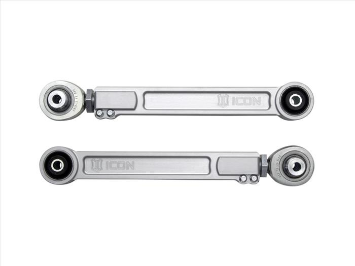 ICON’s billet aluminum rear upper link arms for the 2020-UP Jeep Gladiator are a significant upgrade over the factory units due to increases in strength, adjustability, and performance. These links are made from CNC machined 6061 aluminum in-house and anodized for corrosion resistance, providing a major improvement over the construction of the stock units. This rear lower link arm kit features PTFE-lined FK rod ends for increased suspension articulation, reduced deflection, and on-vehicle link arm length adjustability using ICON’s double adjuster system. Additionally, multi durometer bushings are installed that allow for noise free operation and maximum angularity without the need for periodic greasing and/or other maintenance. The quality rod ends and bushings featured in these link arms allow the vehicle’s suspension to function as intended, without the bushing bind that limits the vehicle in stock form. After the design phase was completed ICON engineers put these parts through the “ICON1K” real-world test cycle for a final stamp of approval.