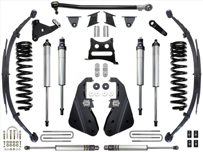 This ICON Vehicle Dynamics 7” suspension system is a great way to lift your 4WD 2017-UP Ford F250/350 Super Duty while drastically improving ride quality and performance. This suspension system is perfect for on-road and off-road use including towing, job site duty, and general off-road adventure. ICON's 7" Stage 2 System is comprised of dual rate coil springs, progressive leaf springs, radius arm drop brackets, adjustable track bar, dual opposing steering stabilizer kit, ICON 2.5 Aluminum Series internal reservoir front and rear shocks, plus all of the necessary hardware for installation. With the endless hours ICON has spent testing and tuning our suspension components and shocks as a complete package, you can rest assured you have the best suspension solution on the market.