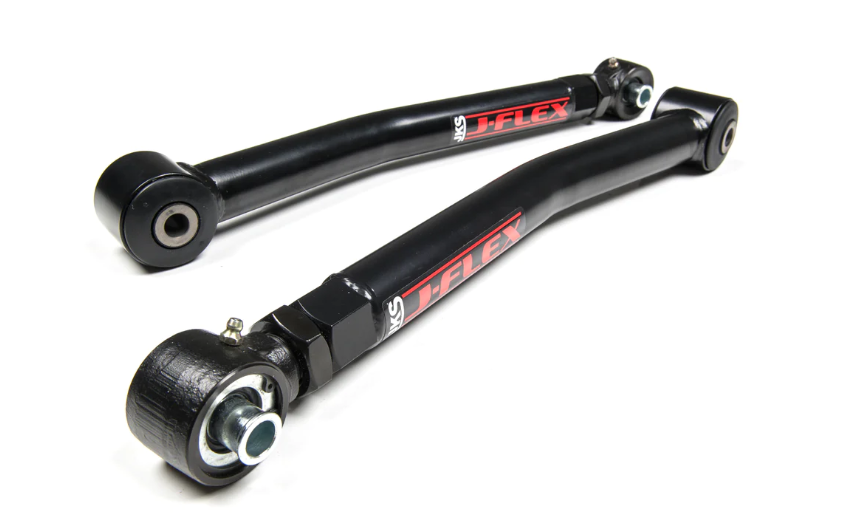 Enhance your Wrangler JK Jeep’s off-road prowess and reliability with JKS J-Flex adjustable rear upper control arms. CNC-bent from stout DOM tubing, the fully adjustable design allows you to fine-tune suspension geometry. The ends are also fully rebuildable and greaseable. With heavy duty 1-1/4"-12 threads and hex shaped weld-in bungs, tightening of the included jam nuts is super easy and secure. At the non-adjustable end, factory style rubber bushings provide quiet, maintenance-free operation. Arms are powder-coated for a long-lasting finish. Sold in pairs.