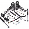 Increase your Jeep Wrangler JL 4-Door's ground clearance, tire clearance and performance with a J-Venture 3.5" suspension system. This complete bolt-on kit includes matched JSPEC dual-rate coil springs, custom-valved JSPEC monotube gas shocks, a front adjustable track bar, a rear track bar bracket, Quicker Disconnect front sway bar end links, extended rear sway bar end links, bump stop extensions, and caster plate alignment correction. On the street, J-Venture™ provides improved ride quality. When the road ends, disconnect your sway bar end links for improved articulation. That makes J-Venture the perfect entry-level performance suspension system. The J-Venture suspension system geared towards equal parts on-road comfort and off-road capability. J-Venture™ has been engineered for low maintenance. Get out and explore with J-Venture.Features