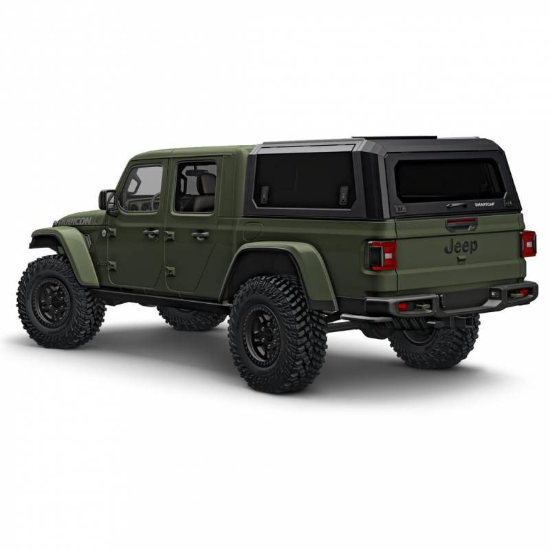 Features Include: Integrated Roof Rails, Positive Pressure Air Vent, Front Flush-Bonded Slider Window, Gullwing Side Doors w/Flush-Bonded Slider Windows, Rear Half-Door w/Flush-Bonded Fixed Window, Third Brake Light* and Matte-Black Automotive Paint. *Third Brake light not included on the Jeep Gladiator