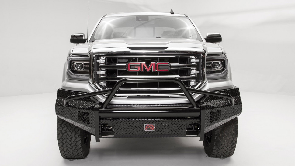Для GMC 1500 мы взяли бампер ранчо и придали ему уникальный стиль и дизайн. Мы подобрали каждый бампер к линиям кузова каждой модели грузовика. Без вертикальных фланцев и скошенных краев. Доступен с бампером Full Guard, Pre-runner Guard или No Guard.