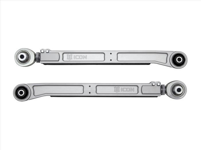 Важелі розроблені ICON спеціально для вашого позашляховика є значним оновленням заводських за рахунок збільшення міцності та характеристик підвіски. Ці компоненти виготовлені на верстатах з ЧПУ та мають виїмки Сталь 1026 DOM, зварені вручну, що значно покращило конструкцію стандартних вузлів. Цей комплект оснащений втулками, які забезпечують безшумну роботу та максимальні кути без необхідності періодичного мастила. Збільшений діапазон руху, що забезпечується цими втулками, дозволяє підвісці функціонувати належним чином, без кріплення втулки, що обмежує автомобіль стандартної комплектації.
