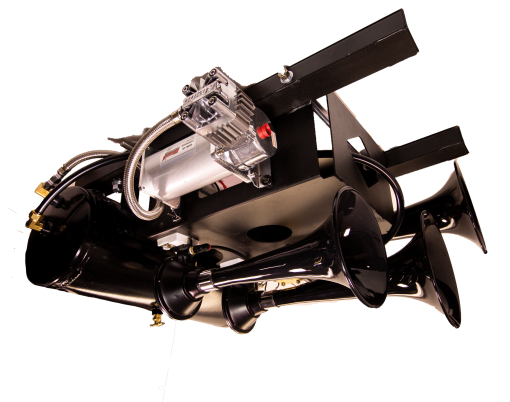 Комплект USTL-230 на 100% крепится болтами и не требует сверления, сварки или модификации автомобиля. Вам больше не нужно тратить часы на проектирование и изготовление монтажных кронштейнов для установки воздушной системы и звукового сигнала поезда.