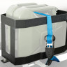 Вертикальная конструкция обеспечивает максимальную устойчивость и экономит место для других предметов, таких как багажные сумки, газовые баллоны и запасные колеса.